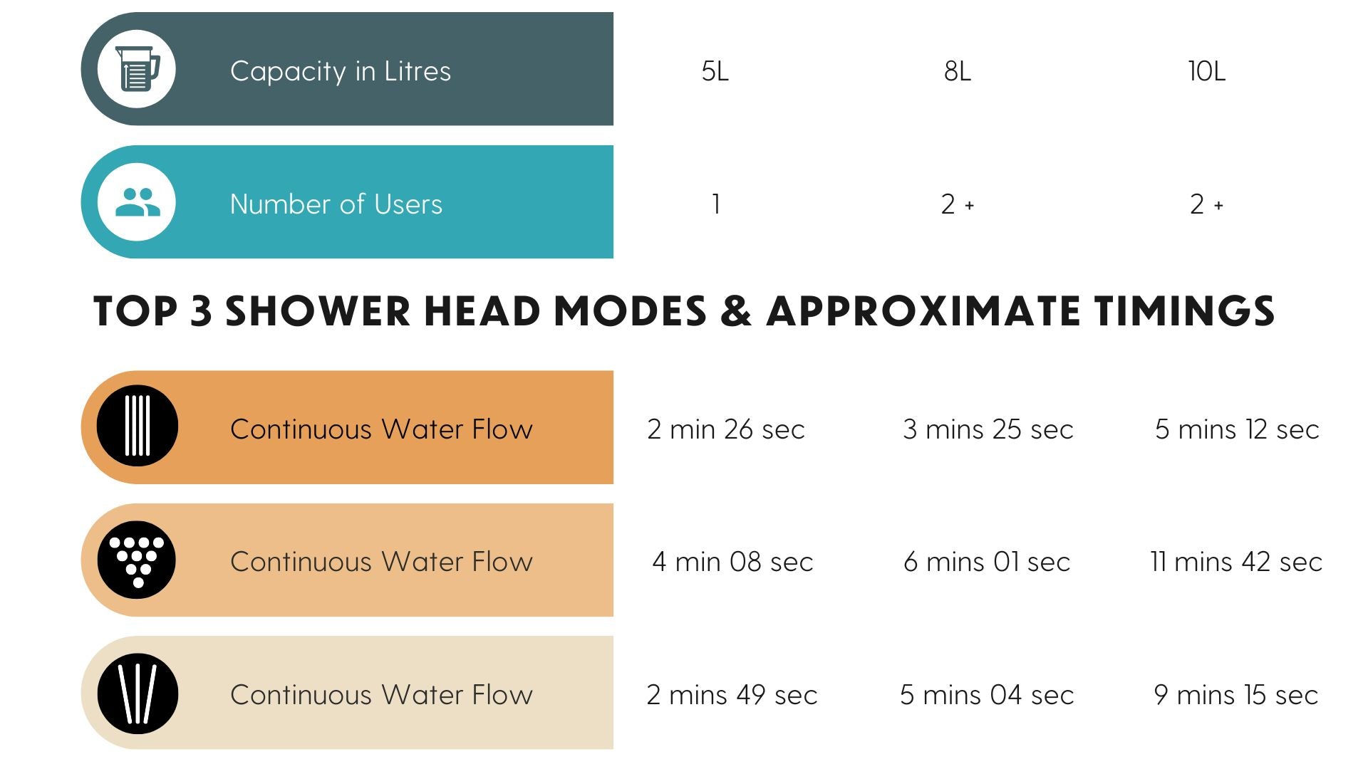 View shower run times for all sizes of Beach Soul Showers HERE