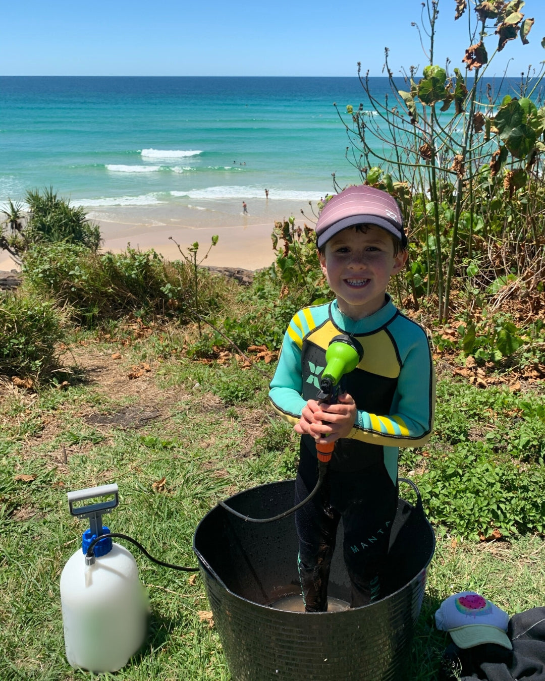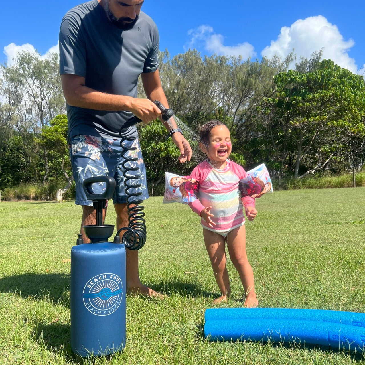 We looked at what was already out there… and while portable showers did exist, most relied on batteries or electricity. Not exactly ideal when you're off-grid or juggling sandy toddlers.
