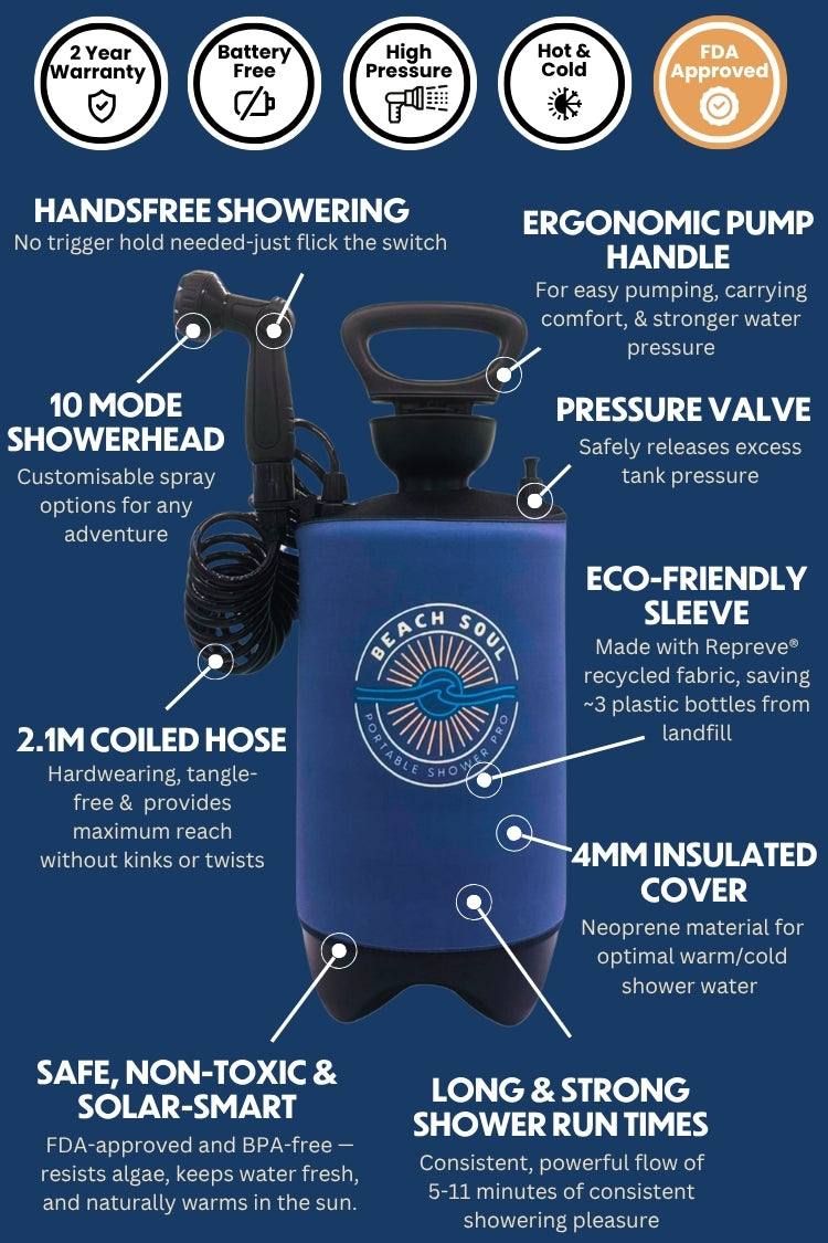 OUTDOOR ADVENTURES JUST GOT EASIER: The 10L Ocean Rise PRO Portable Shower